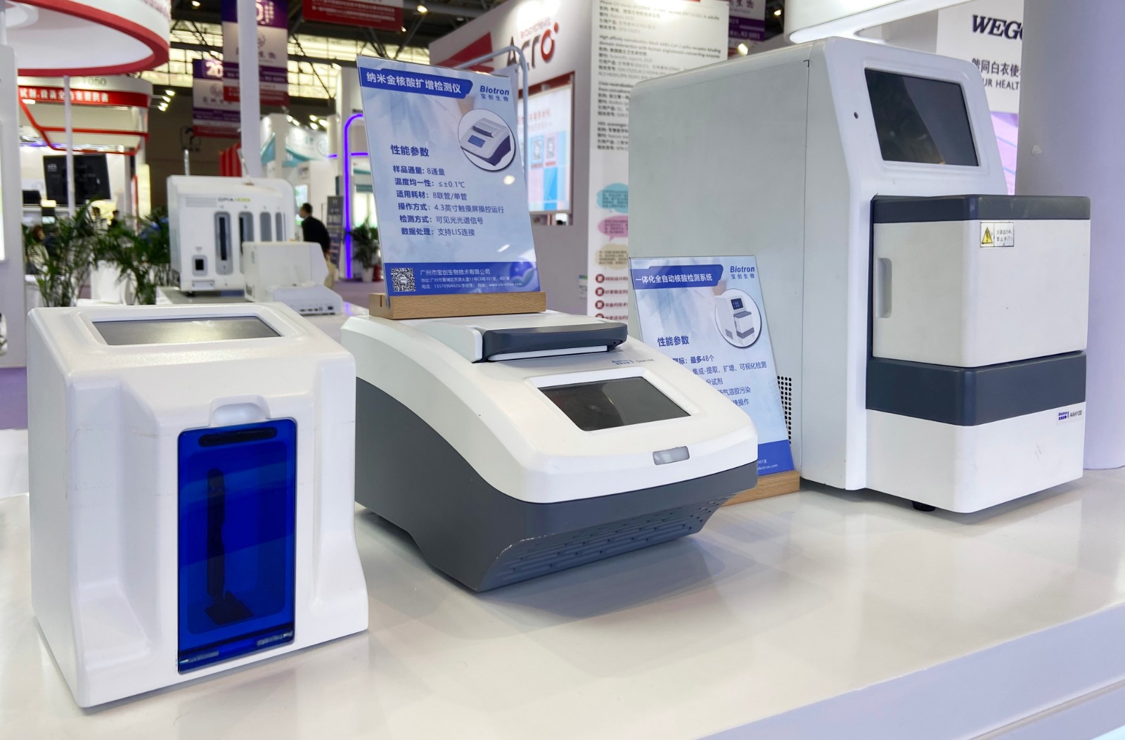 Biotron Molecular Diagnostics series mainly exhibited the instrument platform represented by the nano-gold nucleic acid amplification detector and the integrated automatic nucleic acid detection system, as well as the multiple nucleic acid detection reagents for respiratory pathogens.