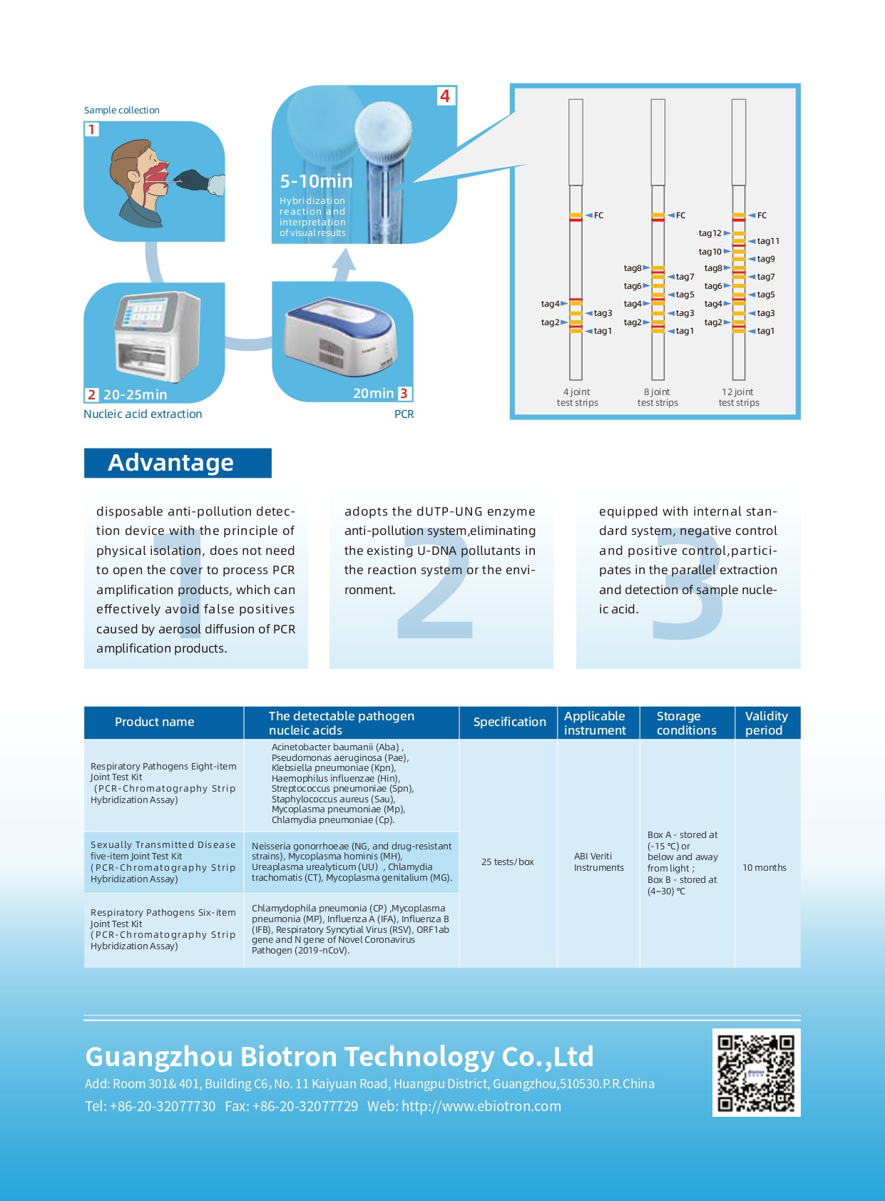 - Disposable anti-pollution detection device with the principle of physical isolation, does not need to open the cover to process PCR amplification products, which can effectively avoid false positives caused by aerosol diffusion of PCR amplification products.