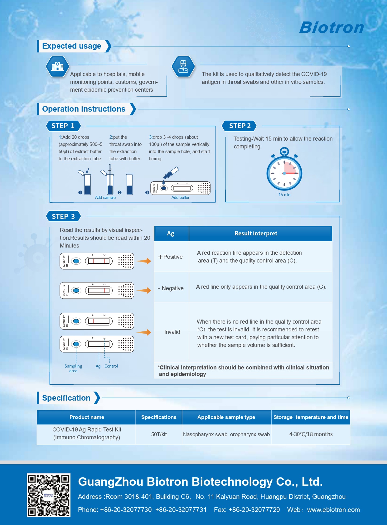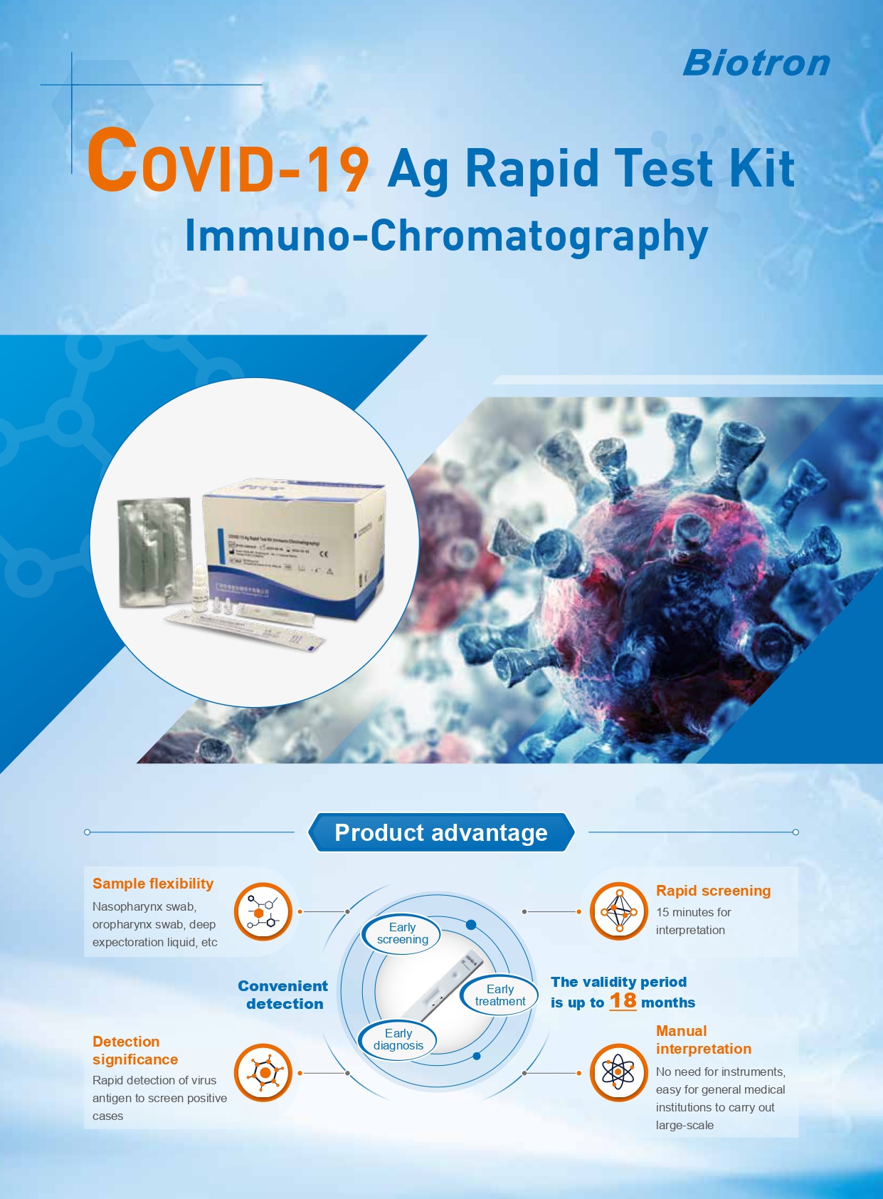 COVID-19 Ag Rapid Test Kit is used for clinical in vitro qualitative detection of novel coronavirus antigens in human throat swabs and other in vitro samples.