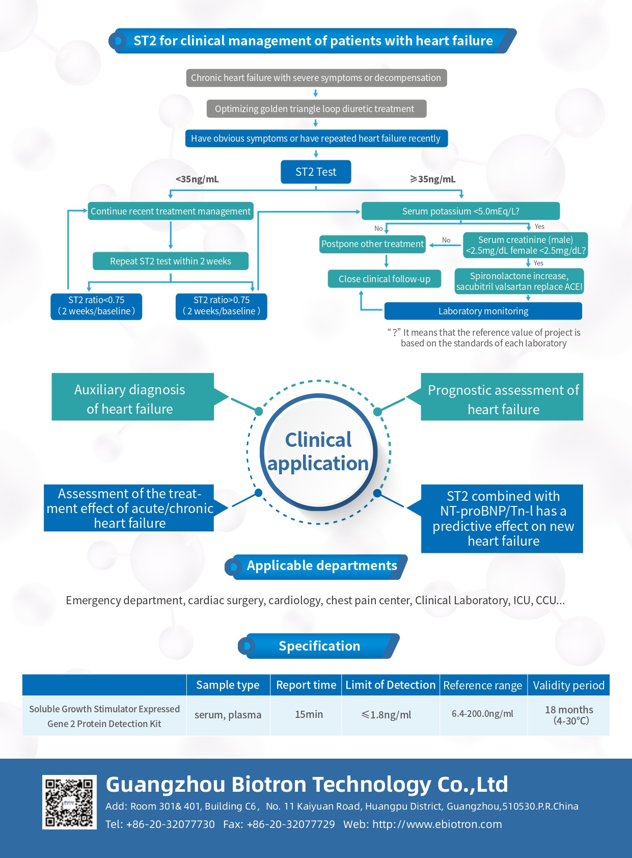 ST2 is a member of the interleukin-I(IL-1)receptor family. When the heart continues to be under pressure, the expression of ST2 increases, which indirectly promotes myocardial hypertrophy and myocardial fibrosis, affects cardiac function, and greatly increases the readmission and mortality of patients with heart failure.